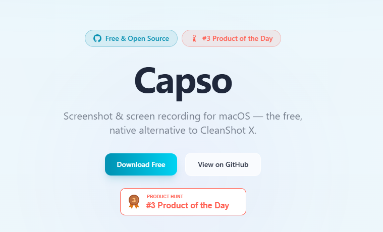 Capso is a powerful, free, and open-source application designed for macOS users who need a reliable tool for capturing screenshots and recording their screens. Built with Swift 6.0 and SwiftUI, Capso offers a native experience that rivals commercial products like CleanShot X. Here are some of its key features: