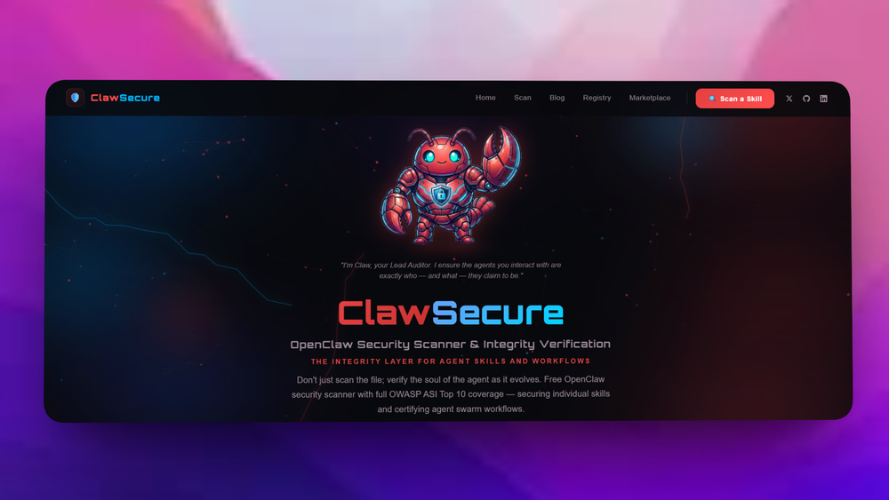 The OpenClaw Security Scanner by ClawSecure is a powerful tool designed to audit AI agent skills before installation. It employs a 3-layer security audit protocol that ensures comprehensive coverage of the OWASP ASI Top 10 security risks, making it essential for developers and users in the AI ecosystem. With over 2,890 agents audited, this tool provides a detailed analysis of potential vulnerabilities, ensuring that users can interact with AI agents safely.